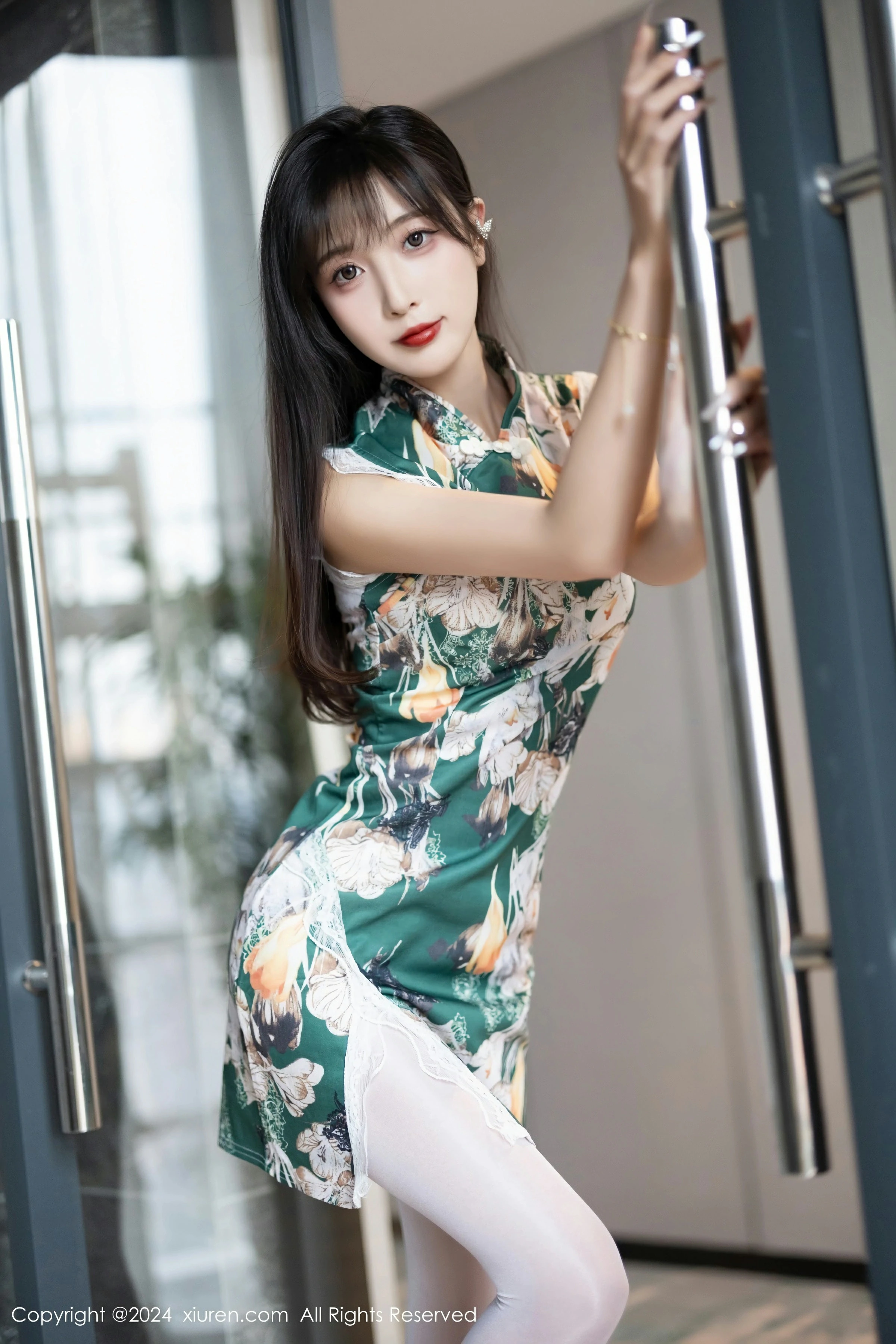 秀人网模特林星阑最新性感写真照片发布!林星阑身着一件性感白色带绿色图案的旗袍,展示了她傲人的身材和迷人的风采。这款旗袍设计独特,不仅突出了她的身形曲线,还带有绿色图案的点缀,更显得她充满风情。而且,她搭配了一套性感白色内衣和白色丝袜,更加凸显了她的魅力与诱惑。林星阑不仅拥有性感火辣的形象,还散发出清纯甜美的气息,让人忍不住为之倾倒。